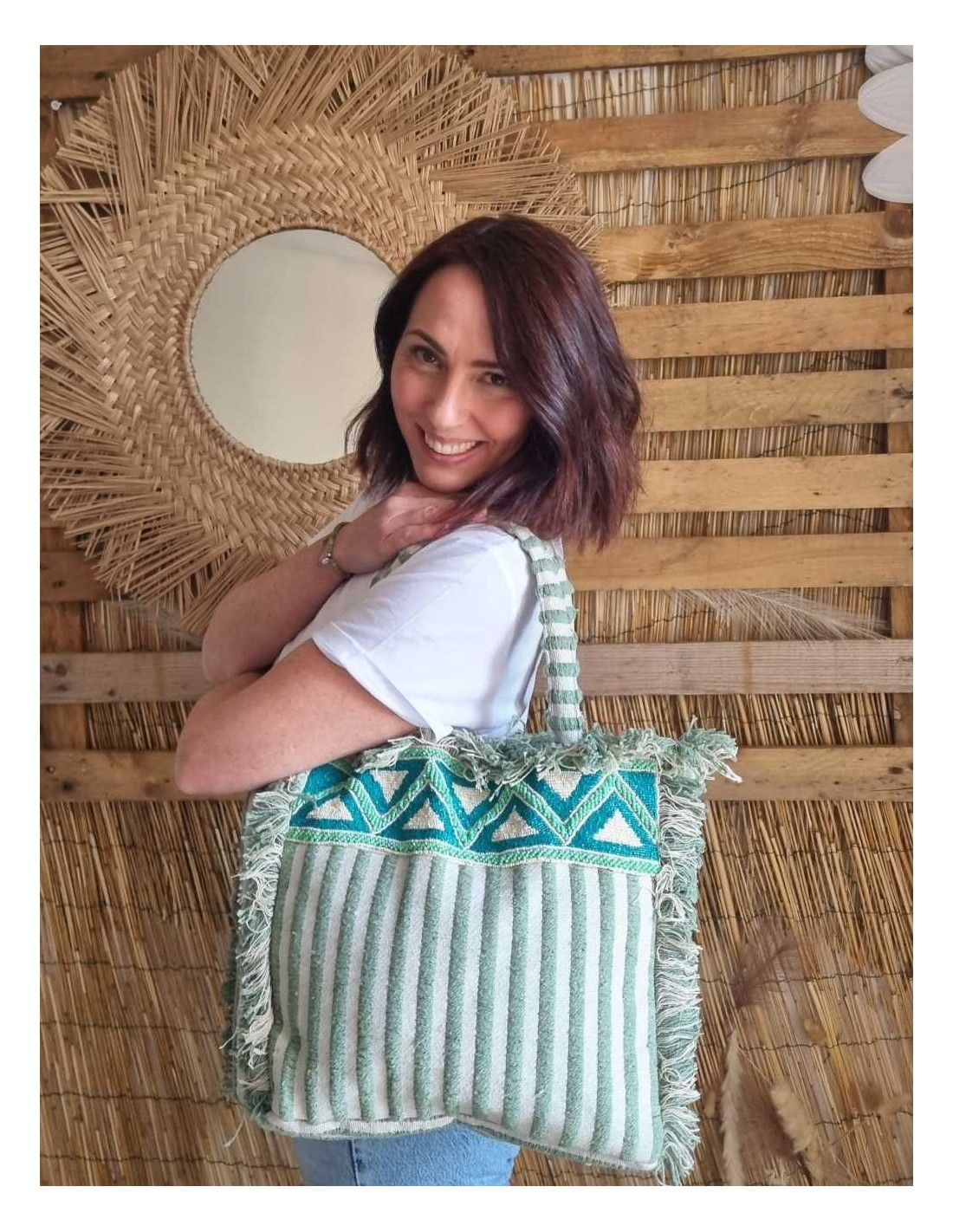 Sac Bohème en Coton Rayé Perlé - Fourre-tout Léger et Tendance