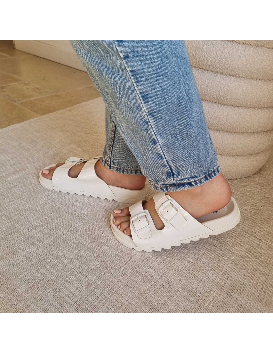 Sandales plates double brides légères et antidérapantes blanches INKA