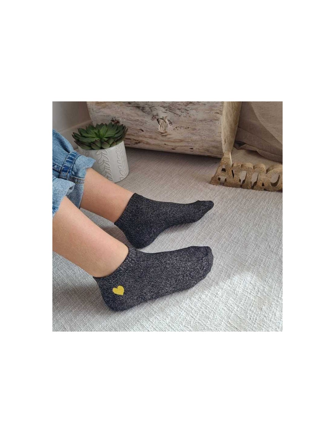 Mi-chaussettes à paillettes noires cœur 💛 TINA