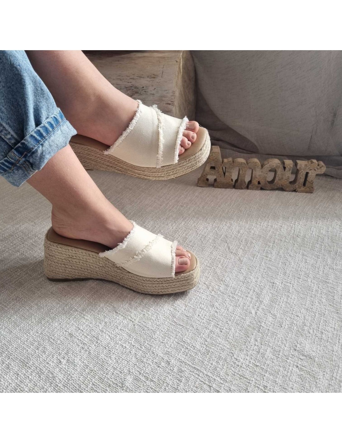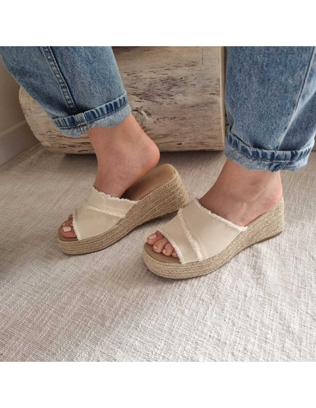 Mules compensées à large bride beige INDAH