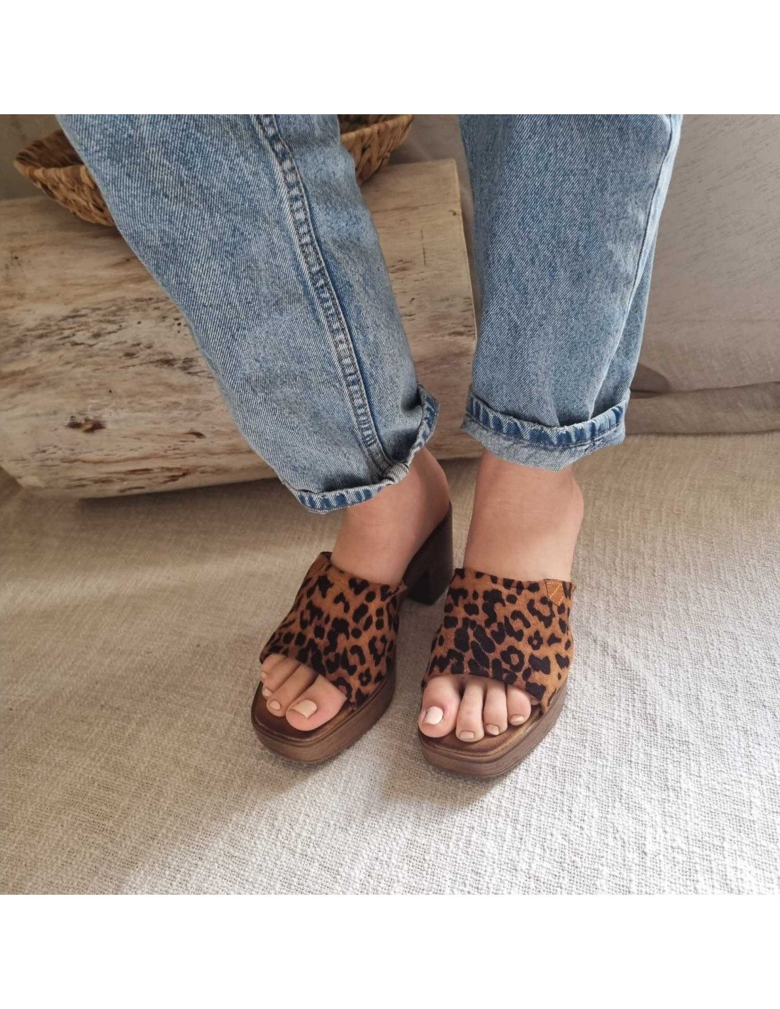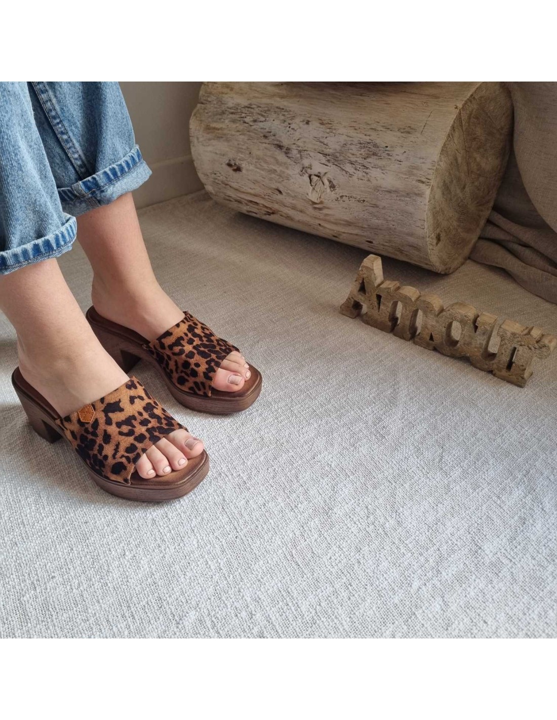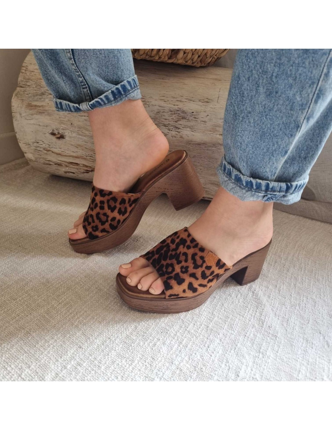 Mules à talon bloc en bois léopard LUANA