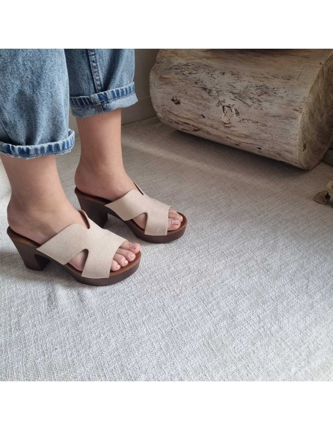 Mules à talon carré beige NANOUK