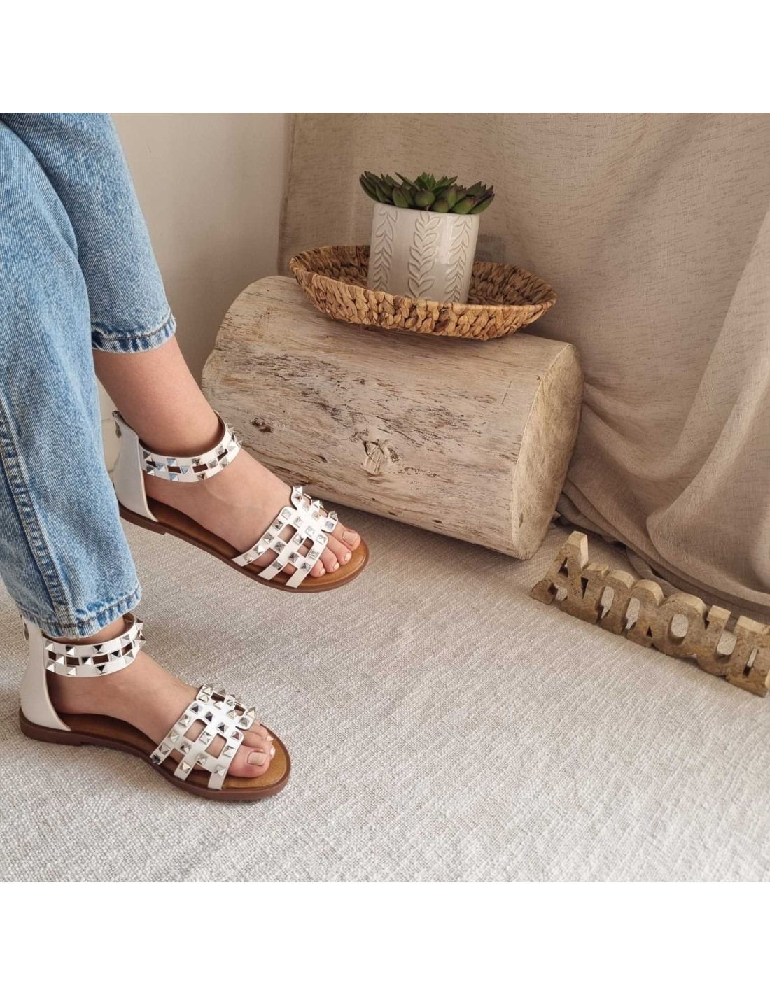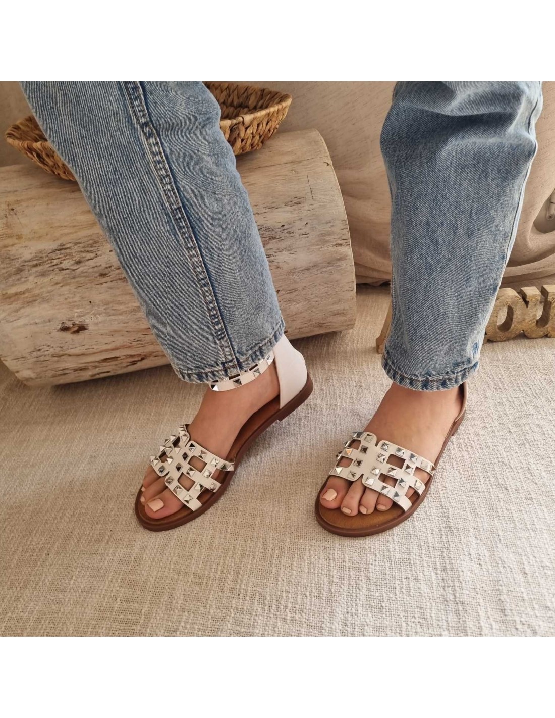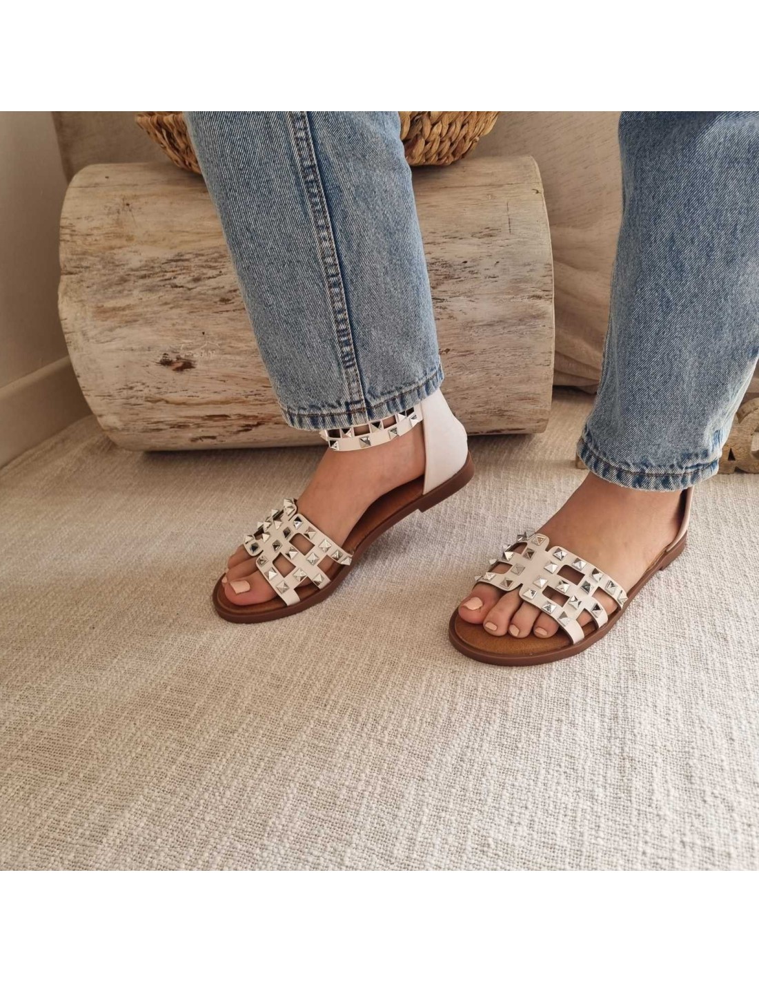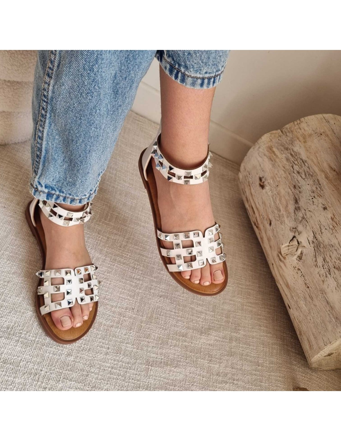 Sandales plates à clous blanche KAIPO