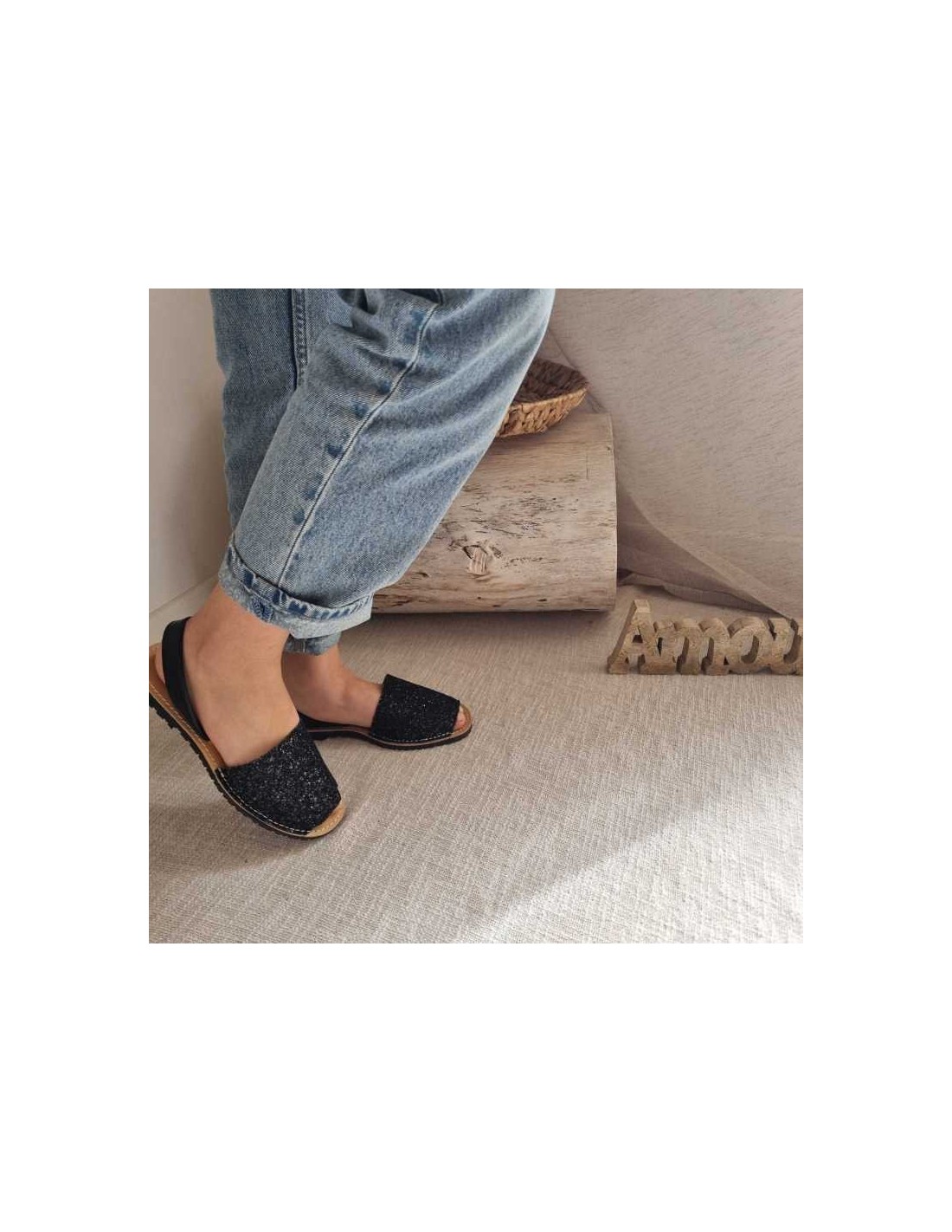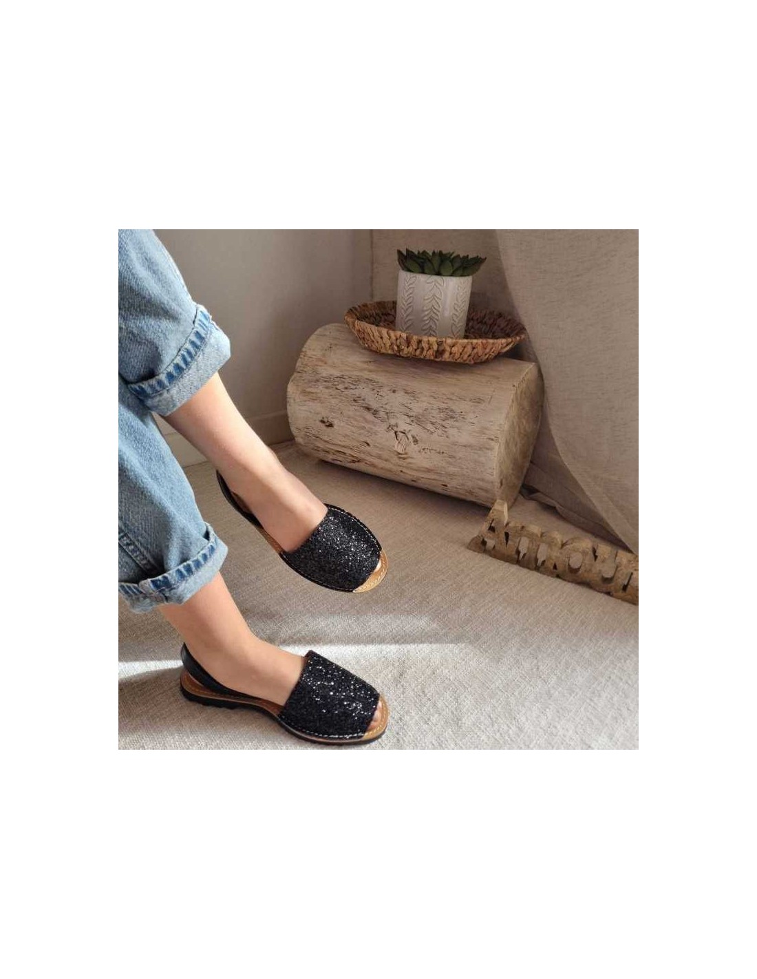 Ajouter une touche d'éclat à votre tenue avec la sandales menorquine en cuir pailletés noires.