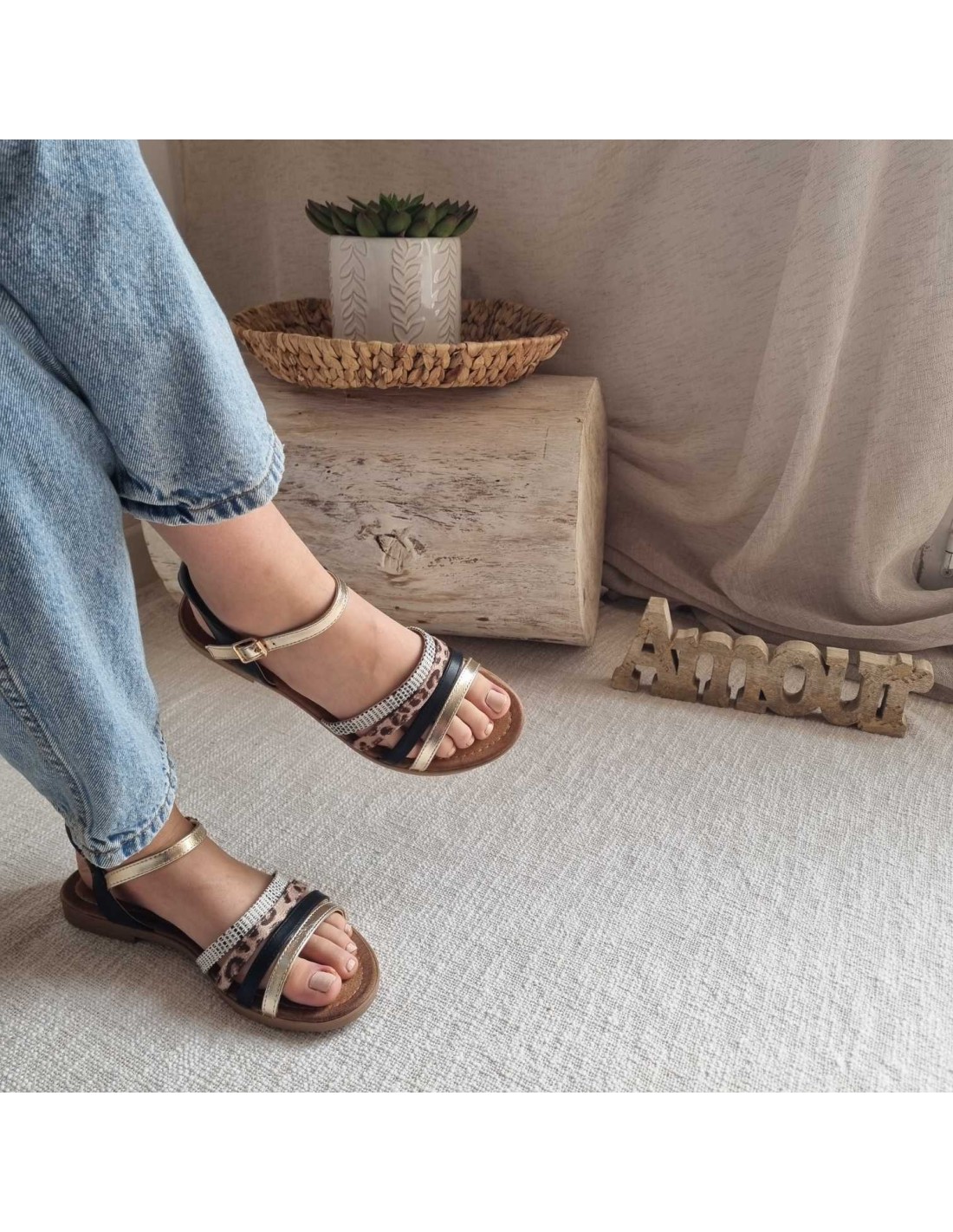 Affichez un style original et estival avec ces sandales à brides de différents motifs au design chic et moderne. Idéales pour une tenue décontractée ou habillée, elles offrent un confort optimal avec leur semelle souple et sa bride à la cheville permettant un bon maintien du pied. Leurs lanières noires, dorées et léopard font toute la différence, elles apportent une tendance actuelle à votre look.