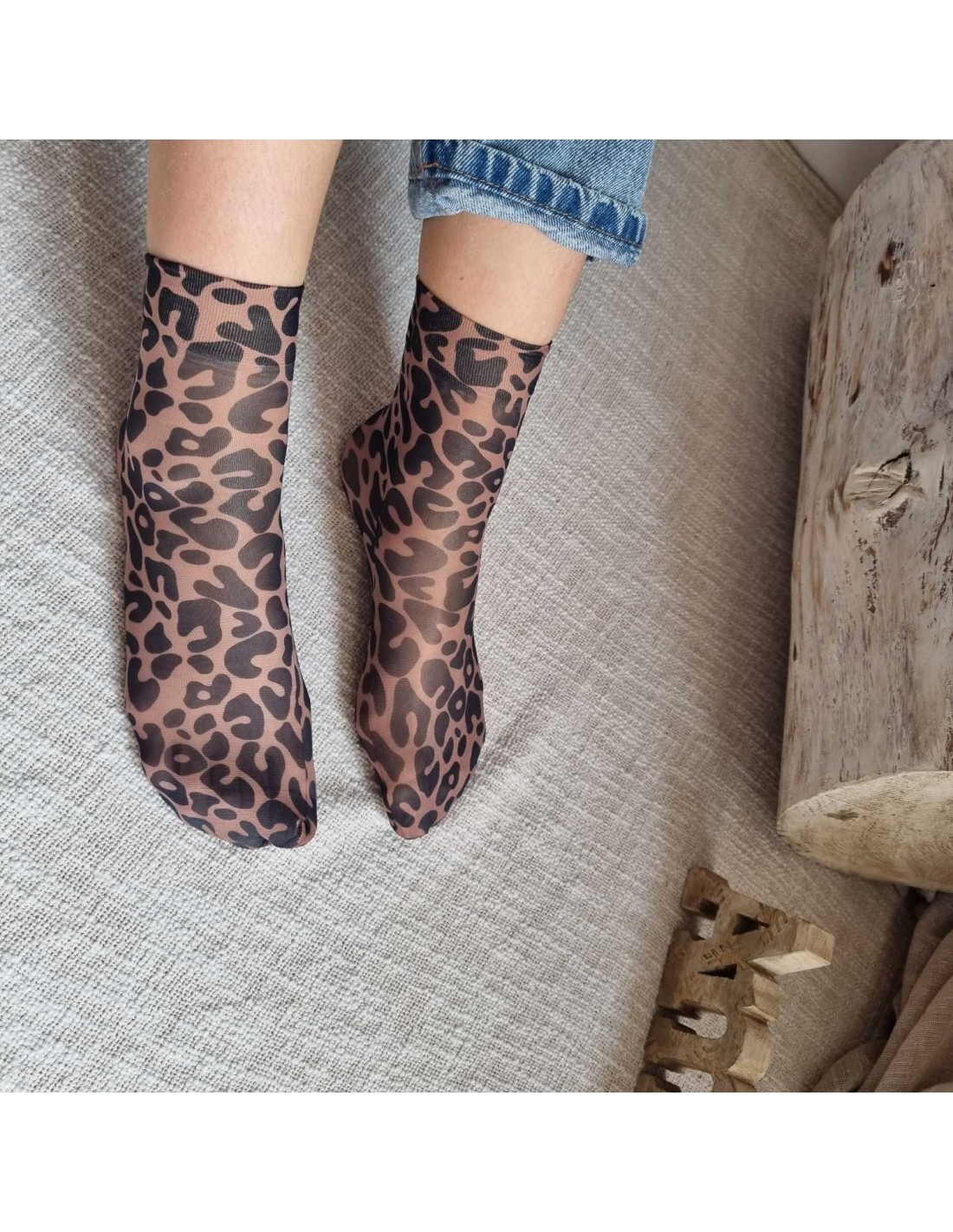 Jolies mi-chaussettes fines, originales avec imprimé gros léo brun sont des incontournables pour la saison estivales.