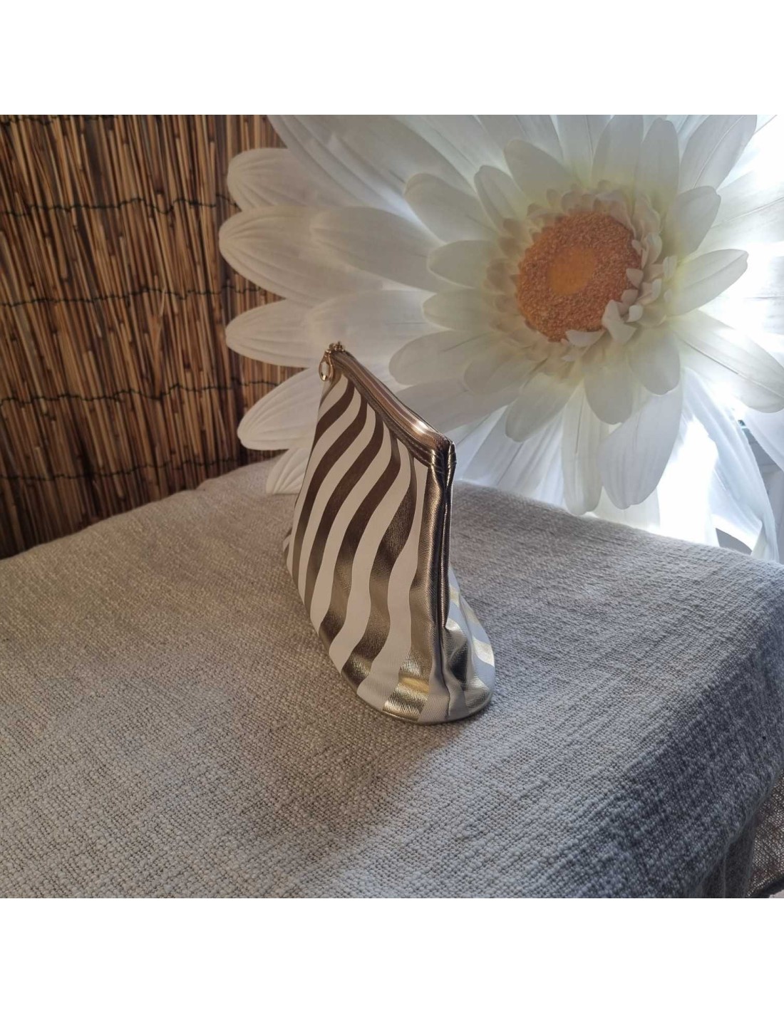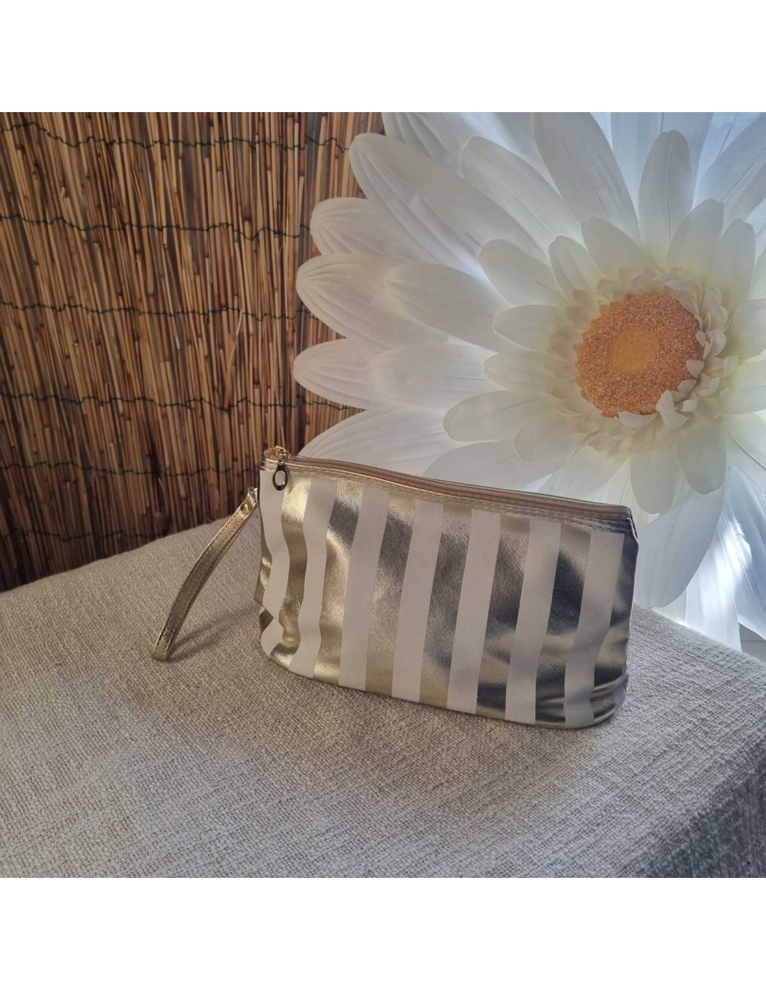 Pochette à rayures blanche/doré HANAE