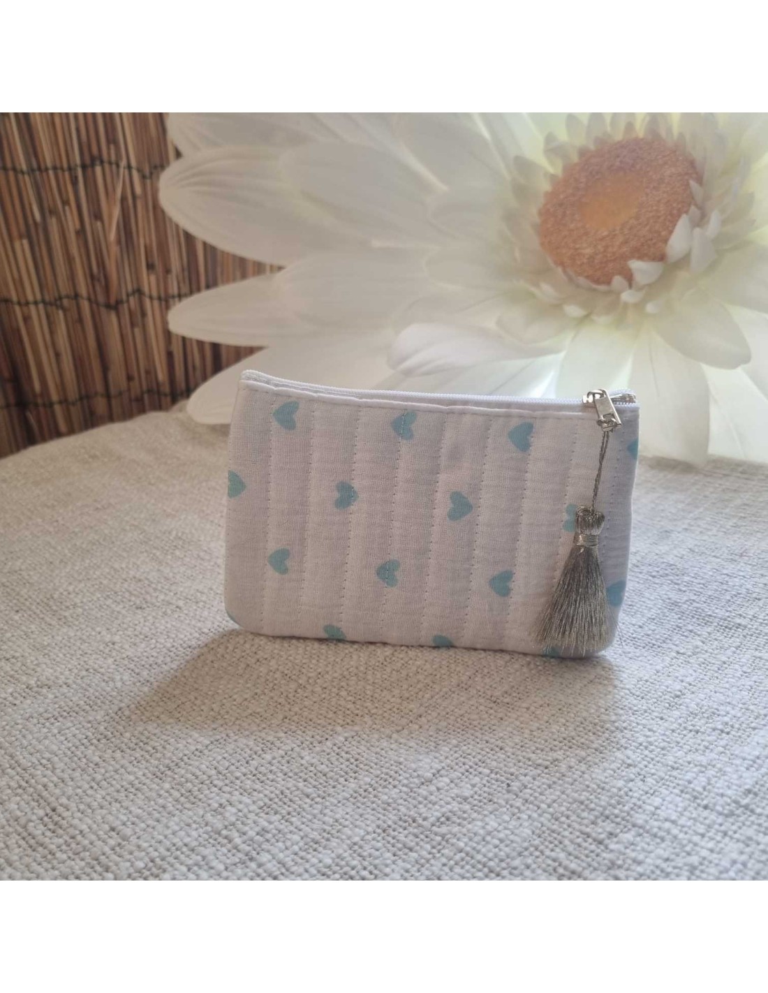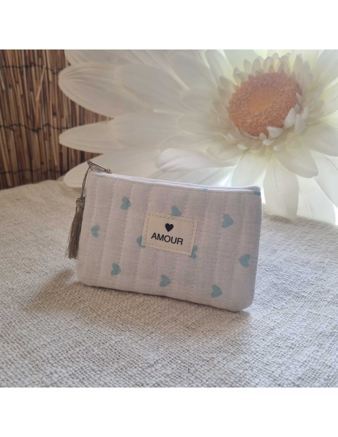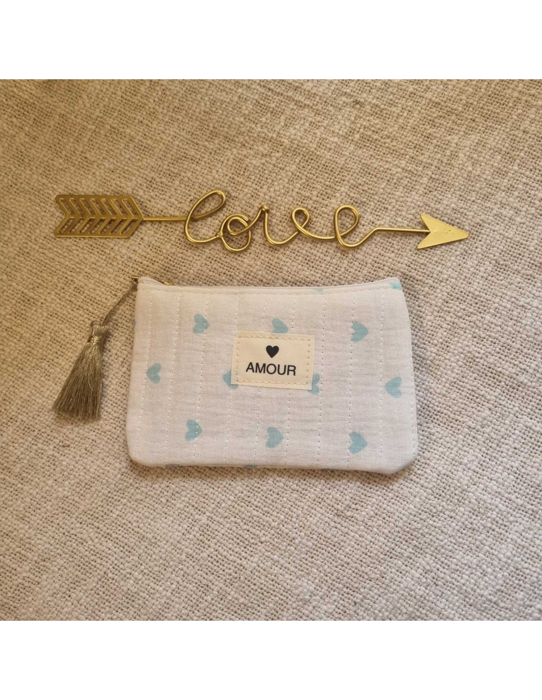 Adorable pochette douce et légèrement gaufrée blanche est délicatement ornée de petits cœurs 🩵 pour une touche douce et romantique. Son écusson brodé "AMOUR" lui apporte un charme unique et intemporel. Elle se glissera facilement dans votre sac, idéale pour y ranger tous les accessoires du quotidien.