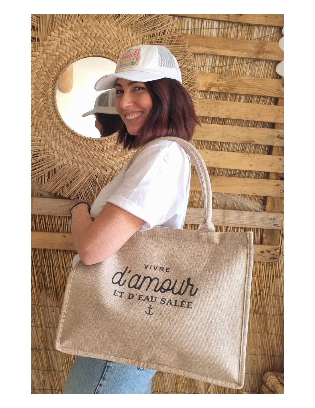 Sac cabas en lin "VIVRE D'AMOUR et D'EAU SALEE" INAYA
